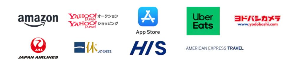 | Amazon | Amazon.co.jp、Amazonマーケットプレイス、Kindle本、Amazon Business | プライム会費、Prime Student会費、Amazonフレッシュ等は対象外 |