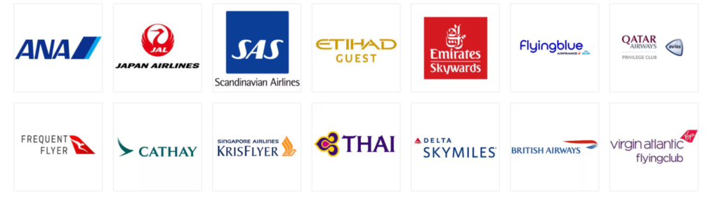 14社の航空会社マイルへ交換することが可能です。
