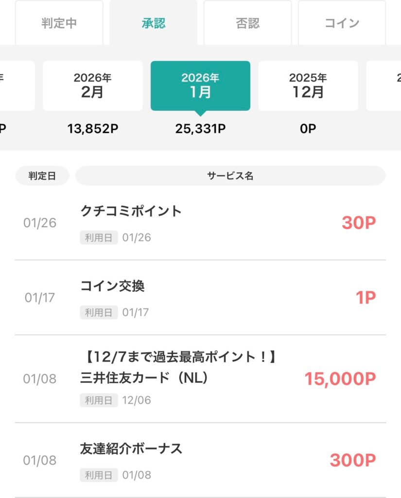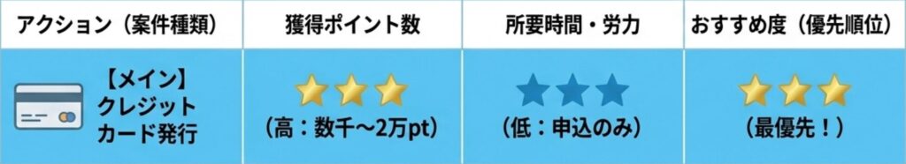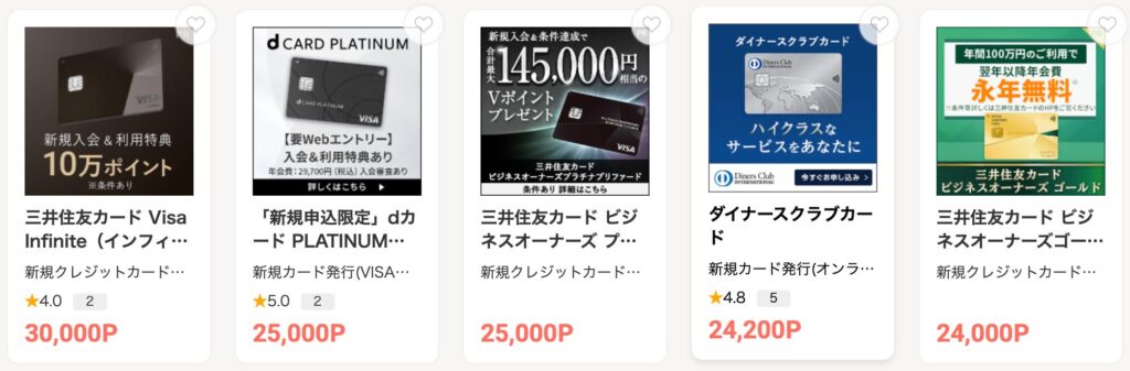 クレジットカード案件では、1件で1万〜2万ポイント以上もらえることもあります。