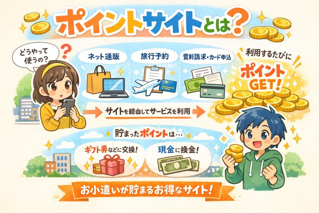 ポイントサイトとは、広告を利用することでポイントがもらえるサービスのことです。