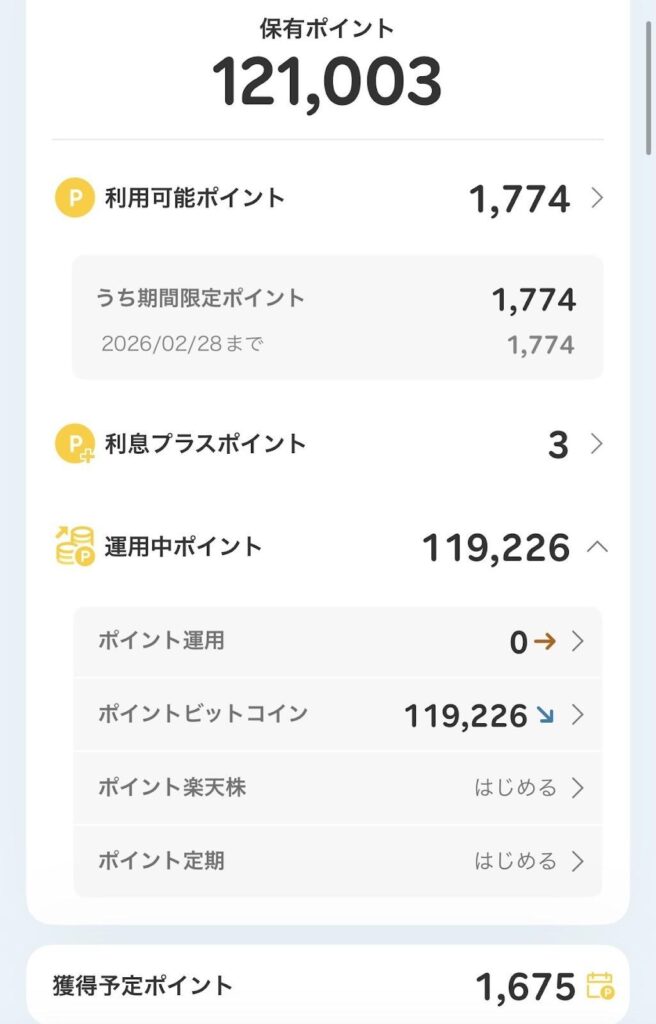 以下、夫が運用中のポイントの一部とこれまでの通算獲得ポイントです。