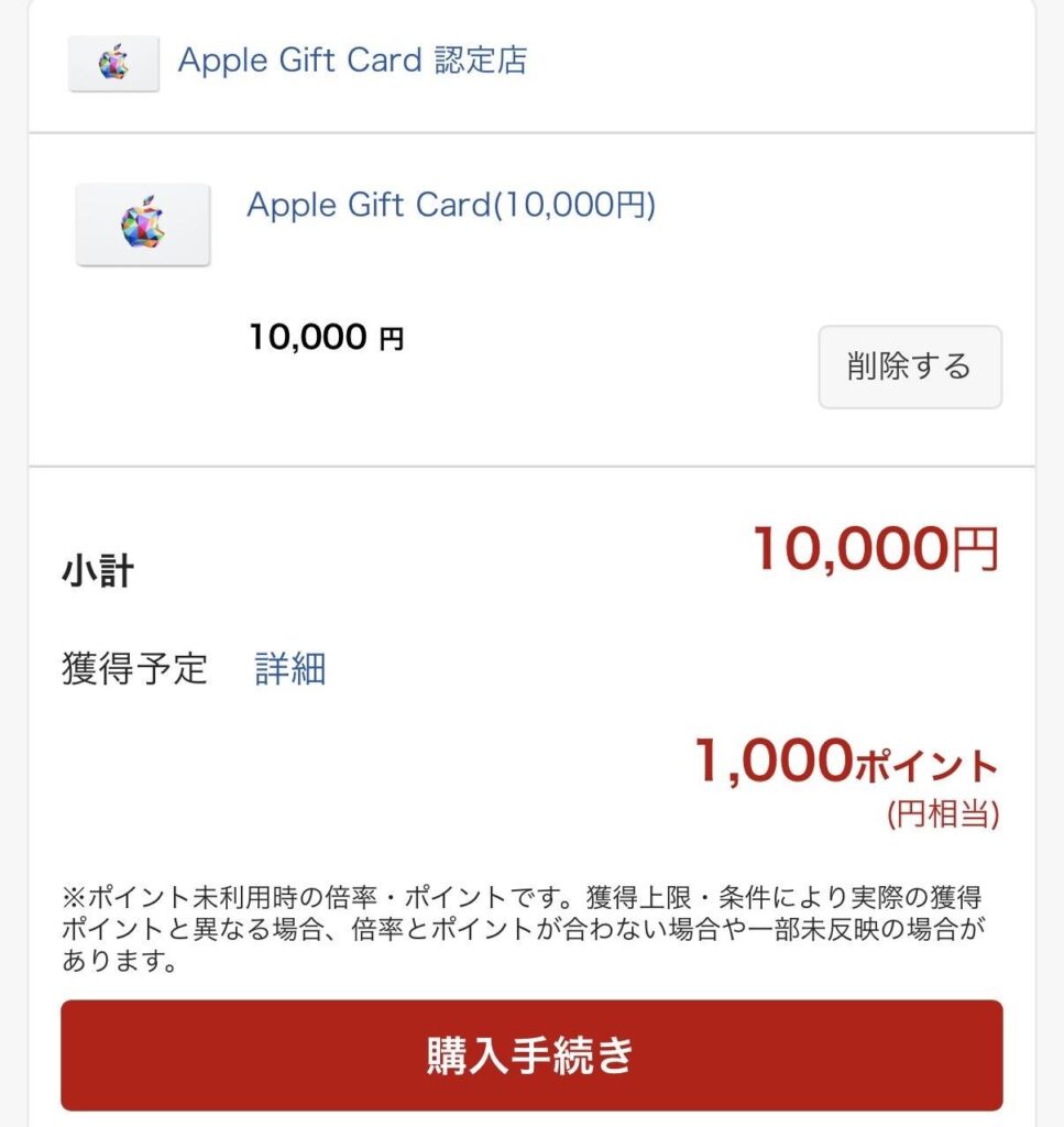 最後の埋め合わせはAppleギフトカードを購入して、購入上限をうまく調整しています。